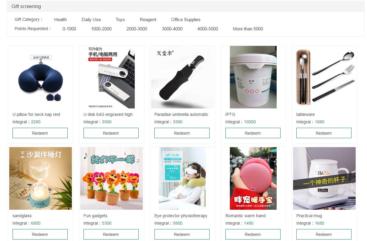 在匯百試劑商城下單后,將根據(jù)金額的多少沉淀相應(yīng)的積分,根據(jù)積分?jǐn)?shù)量可兌換相應(yīng)的禮品。其中禮品還包含不定時(shí)促銷(xiāo)的生化試劑品種哦!